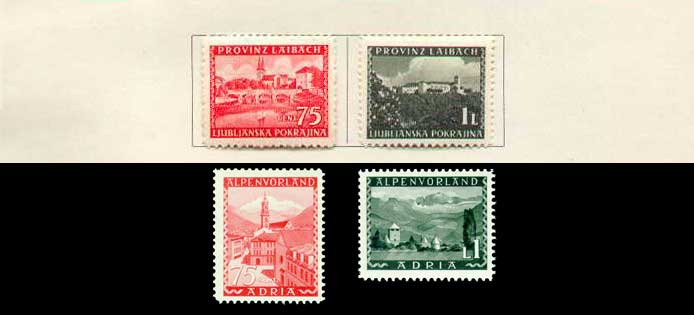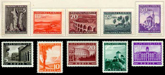 TWO COMPLETE SETS Provinz Laibach (Ljubljanska pokrajina) - Alpenvorland Adria Do they have something in common? |