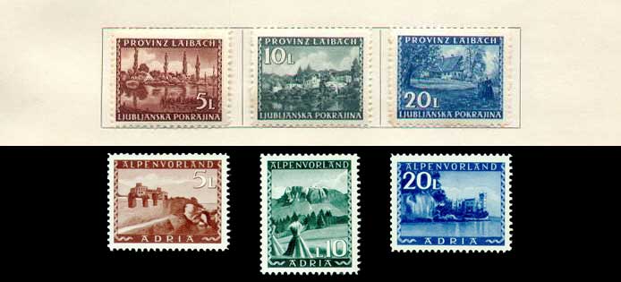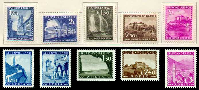 TWO COMPLETE SETS Provinz Laibach (Ljubljanska pokrajina) - Alpenvorland Adria Do they have something in common? |