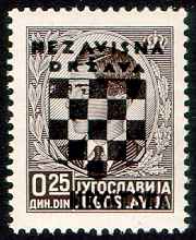 | 10. 5. 1941 Pretisak NEZAVISNA DRZAVA HRVATSKA i hrvatski grb Overprint NEZAVISNA DRZAVA HRVATSKA and Croatian Coat of Arms 25 para, 23.5x30 mm, naklada/issued 5000 M24 Cijela serija (15 v)/ Entire set (15 v) |