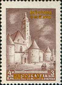 | 10. 5. 1941 Zlatni pretisak NEZAVISNA DRZAVA HRVATSKA II Filatelisticka izlozba u Zagrebu, 16.-27. 3. 1941 Zagreb: Stara katedrala. Overprint in gold NEZAVISNA DRZAVA HRVATSKA IInd Philatelic Exhibition in Zagreb, 16.-27. 3. 1941 Zagreb: The old cathedral church. 1.50+1.50 dinar, 30x40 mm, naklada/issued 56 000 sets M40 (440) |
