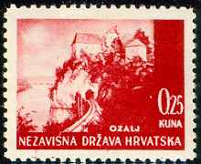 | 16. 11. 1941 KRAJOBRAZI Ozalj LANDSCAPES Ozalj 0.25 kuna, 45x28 mm, naklada/issued 2 400 000 M47 Posebnosti/Irregularities |