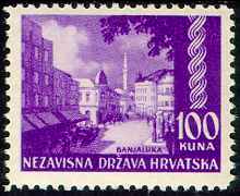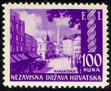 | 13. 6. 1942 KRAJOBRAZI Banja Luka LANDSCAPES Banja Luka 100 kuna, 45x28 mm, naklada/issued 150 000 M65 |