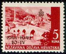 | 10. 4. 1942 Prva obljetnica NDH 1941-1942 10 IV First Anniversary of NDH 1941-1942 10 IV 5 Kuna, 34x27.5 mm, naklada/issued 250 000 M 79 |