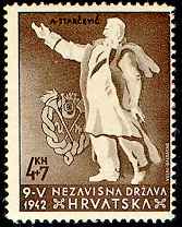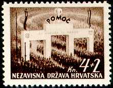 | 10. 4. 1942 Prva obljetnica NDH 1941-1942 10 IV First Anniversary of NDH 1941-1942 10 IV 2 Kune, 34x27.5 mm, naklada/issued 250 000 M 78 |