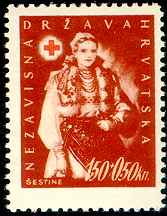 | 4. 10. 1942 NARODNE NOSNJE Sestine Folk Costumes Sestine 1.50 + 0.50 Kuna, 27x33.5 mm, naklada/issued 210 000 M 86 |