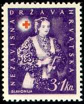 | 4. 10. 1942 NARODNE NOSNJE Slavonija Folk Costumes Slavonia 3 + 1 Kuna, 27x33.5 mm, naklada/issued 235 000 M 87 |