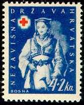 | 4. 10. 1942 NARODNE NOSNJE Bosna Folk Costumes Bosnia 4 + 2 Kuna, 27x33.5 mm, naklada/issued 152 000 M 88 |