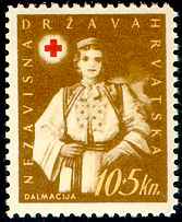 | 4. 10. 1942 NARODNE NOSNJE Dalmacija Folk Costumes Dalmatia 10 + 5 Kuna, 27x33.5 mm, naklada/issued 160 000 M 89 |