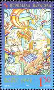 28. 11. 1997 BOZIC 1997. CHRISTMAS 1997 1.30 kuna, 28.5x48 mm, naklada/issued 1 500 000 Autor: Ivan Antolcic |