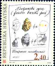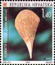 6. 11. 1997 PALEONTOLOSKI NALAZI U HRVATSKOJ Novljanski ogrc (Viviparus novskaensis) PALAEONTOLOGICAL FINDS IN CROATIA Novska fossil pond Periwinkle (Viviparus novskaensis) 2.40 kuna, 29.82x35.5 mm, naklada/issued 350 000 Autor: Zlatko Keser |