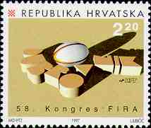 6. 6. 1997 58. KONGRES FIRA (FEDERATION INTERNATIONAL DE RUGBY AMATEUR) DUBROVNIK 58th CONGRES OF THE FIRA (FEDERATION INTERNATIONAL DE RUGBY AMATEUR) DUBROVNIK 2.20 kuna, 35.5x29.82 mm, naklada/issued 350 000 Autor: Boris Ljubicic |