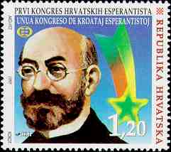 31. 5. 1997 PRVI KONGRES HRVATSKIH ESPERANTISTA Lazar Ludvig Zamenhof FIRST CROATIAN ESPERANTIST CONFERENCE Ludwig Lazarus Zamenhof 1.20 kuna, 39.76x35.5 mm, naklada/issued 350 000 Autor: Eugen Kokot |