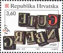 7. 2. 1997 Veliki Europljani 600. obljetnica rodenja Johannesa Gutenberga Great Europeans 600th Anniversary of the Birth of Johannes Gutenberg 3.60 kuna, 35.5x29.82 mm, naklada/issued 350 000 Autor: Boris Ljubicic |