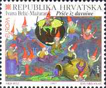 6. 3. 1997 EUROPA - Price i legende "Price iz davnine" Ivane Brlic-Mazuranic Ilustracija "Domaci" (Cvijeta Job, 1965) za pricu "Suma Striborova" EUROPE - Stories and Legends "Stories from Ancient Times" by Ivana Brlic Mazuranic "The Home Genies" an illustration by Cvijeta Job, 1965 from the story "Stribor's Forest" 1.30 kuna, 35.5x29.82 mm, naklada/issued 350 000 Autor: Nevenka Arbanas |