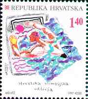 10. 9. 1997 HRVATSKA OLIMPIJSKA ODLICJA Vaterpolo - srebrena medalja, Atlanta 1996. CROATIAN OLYMPIC MEDALS Waterpolo - silver medal, Atlanta 1996 1.40 kuna, 29.81x34 mm, naklada/issued 350 000 Autor: Zlatko Keser |