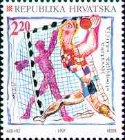 10. 9. 1997 HRVATSKA OLIMPIJSKA ODLICJA Rukomet - zlatna medalja, Atlanta 1996. CROATIAN OLYMPIC MEDALS Handball - gold medal, Atlanta 1996 2.20 kuna, 29.81x34 mm, naklada/issued 350 000 Autor: Zlatko Keser |