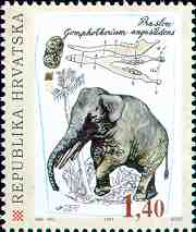 6. 11. 1997 PALEONTOLOSKI NALAZI U HRVATSKOJ Praslon (Gomphotherium angustidens) PALAEONTOLOGICAL FINDS IN CROATIA Primordial Elephant (Gomphotherium angustidens) 1.40 kuna, 29.82x35.5 mm, naklada/issued 350 000 Autor: Zlatko Keser |