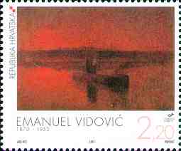 14. 11. 1997 HRVATSKO MODERNO SLIKARSTVO Emanuel Vidovic: "Angelus" (1906-1907) CROATIAN MODERN PAINTING Emanuel Vidovic: "Angelus" (1906-1907) 2.20 kuna, 42.6x35.5 mm, naklada/issued 350 000 Autor: Danijel Popovic |