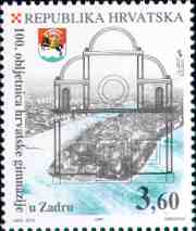 23. 10. 1997 OBLJETNICE HRVATSKOGA JEZIKA 100. obljetnica Hrvatske gimnazije u Zadru ANNIVERSARIES OF THE CROATIAN LANGUAGE 100th Anniversary of the Croatian Grammar School in Zadar 3.60 kuna, 29.82x35.5 mm, naklada/issued 350 000 Autor: Nevenka Arbanas |