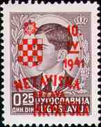 | 21. 4. 1941 Pretisak NEZAVISNA DRZAVA HRVATSKA i hrvatski grb Overprint NEZAVISNA DRZAVA HRVATSKA and Croatian Coat of Arms 25 para, 23.5x30 mm, naklada/issued 3 217 500 M9 Cijela serija (15 v)/ Entire set (15 v) |