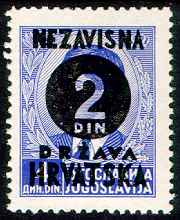 | 16. 5. 1941 Pretisak NEZAVISNA DRZAVA HRVATSKA 2 DIN Overprint NEZAVISNA DRZAVA HRVATSKA 2 DIN 2 dinar (over 4 din), 23.50x30 mm, naklada/issued 3 890 000 M42 (399) |