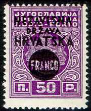 | 17. 5. 1941 Pretisak NEZAVISNA DRZAVA HRVATSKA FRANCO Overprint NEZAVISNA DRZAVA HRVATSKA FRANCO 50 para, 23.50x30 mm, naklada/issued 1 000 000 M43 (P 64 II) Cijela serija (4 v)/ Entire set (4 v) |