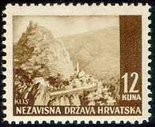| 7. 9. 1942 KRAJOBRAZI Klis LANDSCAPES Klis 12 kuna, 45x28 mm, naklada/issued 1 000 000 M61 |