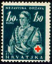 | 12. 10. 1941 NARODNE NOSNJE Sinj Folk costumes..... Sinj 1.50 + 1.50 kuna, 29x37 mm, naklada/issued 350 000 M66 |