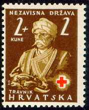 | 12. 10. 1941 NARODNE NOSNJE Travnik Folk costumes..... Travnik 2 + 2 kune, 29x37 mm, naklada/issued 350 000 M67 |