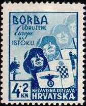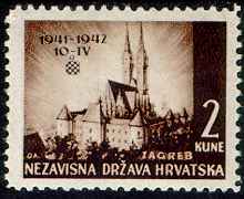 | 10. 4. 1942 Prva obljetnica NDH 1941-1942 10 IV First Anniversary of NDH 1941-1942 10 IV 2 Kune, 34x27.5 mm, naklada/issued 250 000 M 78 |