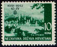 | 10. 4. 1942 Prva obljetnica NDH 1941-1942 10 IV First Anniversary of NDH 1941-1942 10 IV 10 Kuna, 34x27.5 mm, naklada/issued 250 000 M 80 |