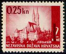 | 23. 6. 1942 KRAJOBRAZI Zagreb LANDSCAPES Zagreb 0.25 Kuna (overprint 2 Kune), 34x27.5 mm, naklada/issued 5 000 000 M 82 |