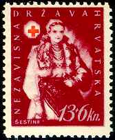 | 4. 10. 1942 NARODNE NOSNJE Sestine Folk Costumes Sestine 13 + 6 Kuna, 27x33.5 mm, naklada/issued 140 000 M 90 |