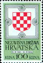 10. 4. 1966 25. godisnjica uzpostave Nezavisne Drzave Hrvatske 25th anniversary of the establishment of the Independent State of Croatia. 100kn, 29x41mm Printed 10,000 stamps (10 stamps on sheet - 5x2) |