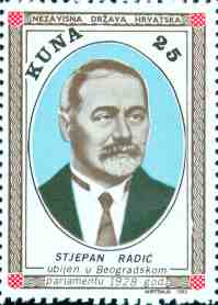 1. 4. 1980, Australia STJEPAN RADIC Ubijen u Beogradskom parlamentu 1928 god. 25kn, 34x47mm Printed 6,000 stamps (1000 sheets - 6 sets in sheet - 4 stamps in set) |