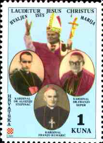 1. 4. 1980, Australia KARDINAL STEPINAC Mucenik za narod i Hrvatsku 25kn, 34x47mm Printed 6,000 stamps (1000 sheets - 6 sets in sheet - 4 stamps in set) |