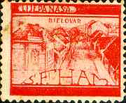 10. 4. 1951 10. godisnjica uzpostave Nezavisne Drzave Hrvatske Split 10th anniversary of proclamation of Independent State of Croatia City of Split Designer: A. Dell'Acqua 2kn, 45x39mm Printed 30,000 stamps in Buenos Aires, Argentina, (35 stamps on sheet 262x280 mm) |