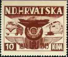 1949 UPU 1874 - 1949 10 kuna Note: Single color print |