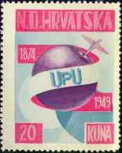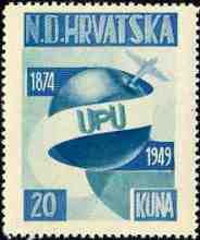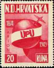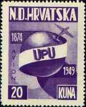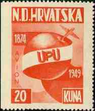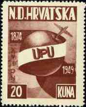 1949 UPU 1874 - 1949 20 kuna Note: Single color print |